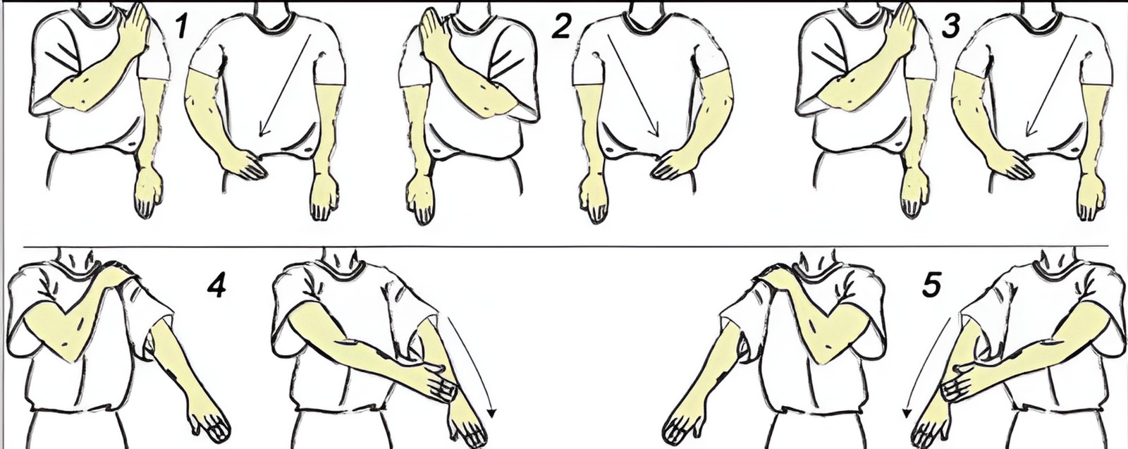 - Place la main dominante sur l’épaule opposée et balaye le bras jusqu’aux doigts